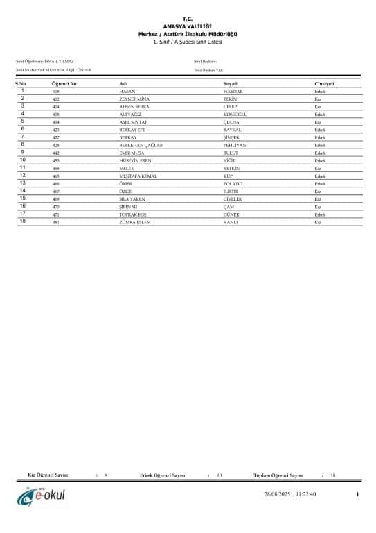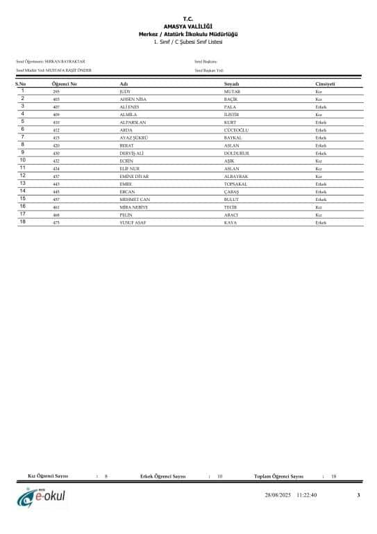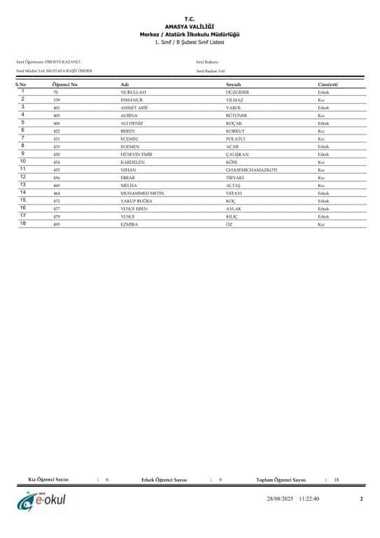 KURA SONUCU OLUŞAN 1. SINIFLAR